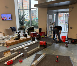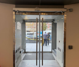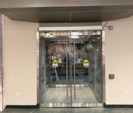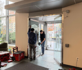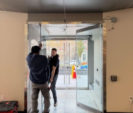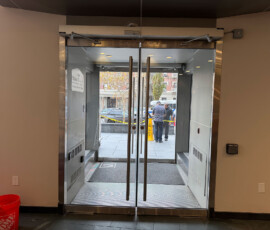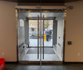After the installation of the new door systems, our technicians proceeded to automate the entire entrance. We mounted and wired automatic door operators above both double-door units, transforming them into fully accessible, hands-free entryways. The operators were precisely calibrated to provide smooth, quiet, and reliable operation, while meeting current New York accessibility standards.
