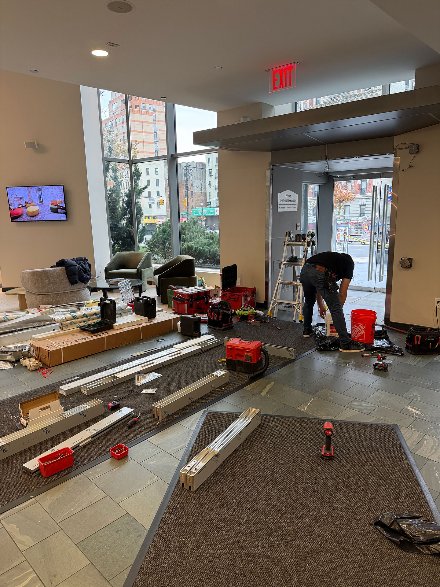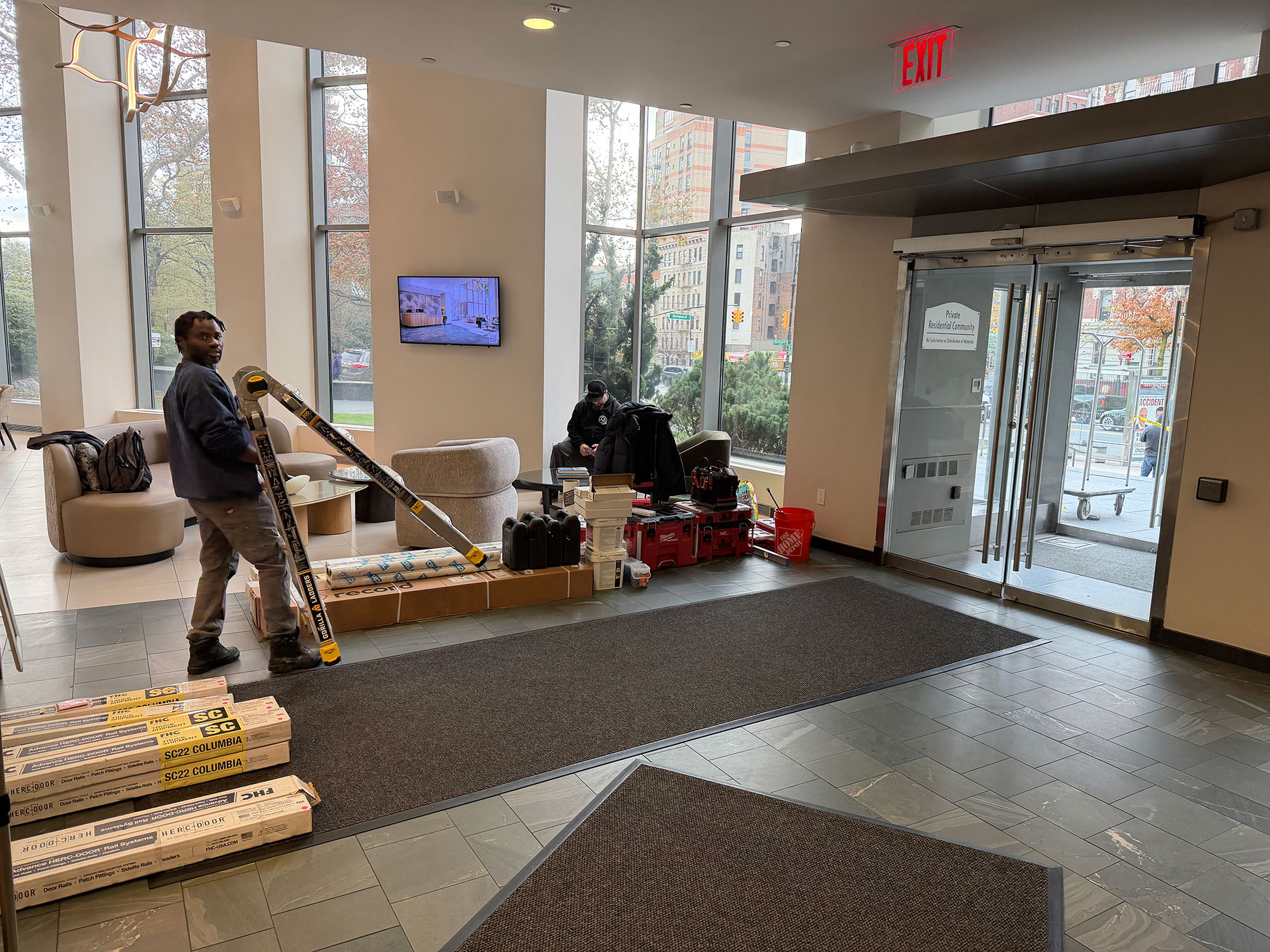 Our team recently completed a major entrance upgrade for the Avalon residential building in Manhattan. The project involved removing the building’s existing entrance doors and installing a brand-new set of two full-glass double doors, for a total of four new doors. These modern, high-clarity glass doors were selected to enhance both the aesthetic appeal and the functionality of the building’s main lobby.