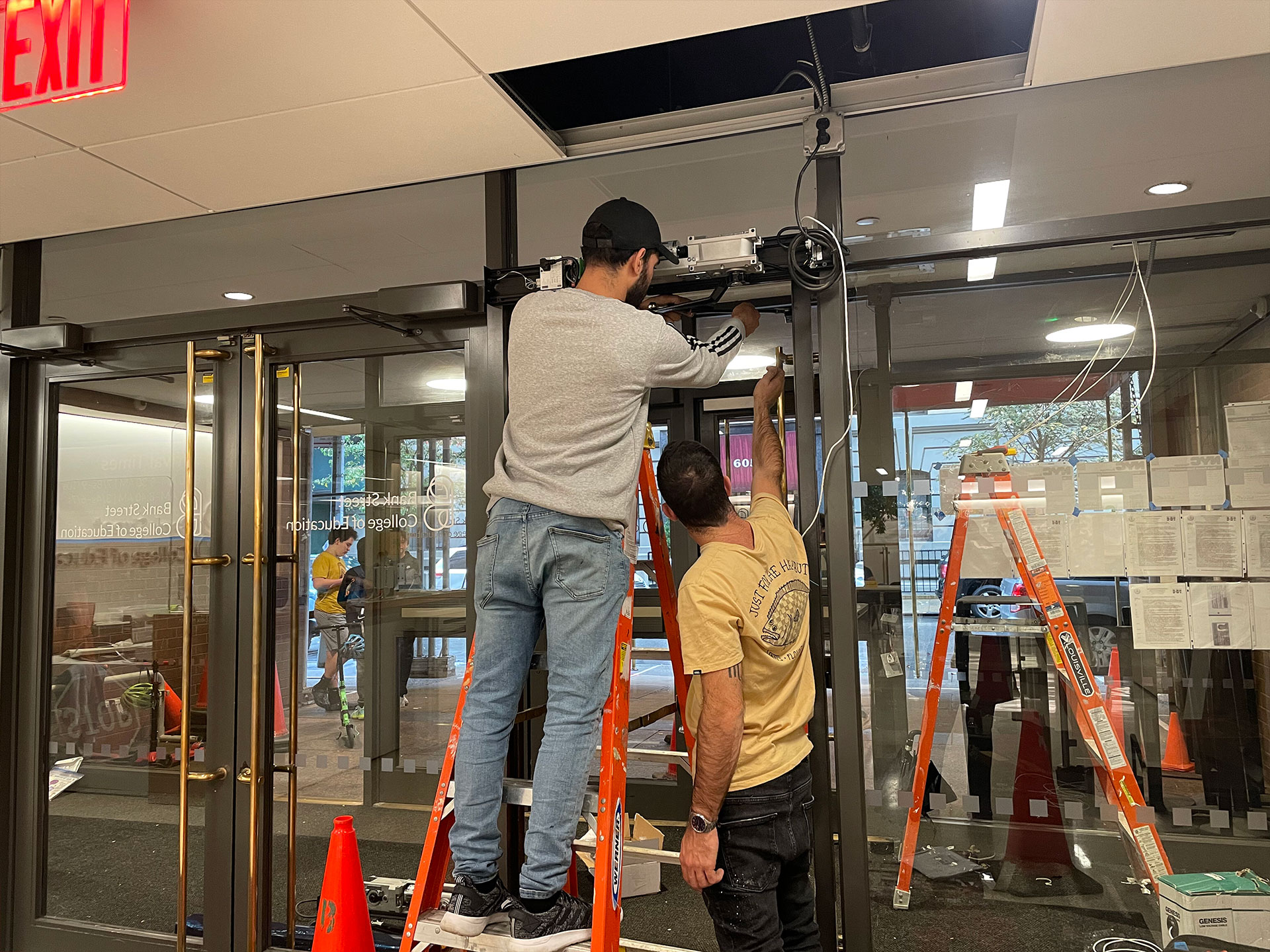 Our services include door installation, repair, maintenance, low voltage services (such as access control installation and maintenance, virtual doorman, and intercom systems), CCTV services, and storefront/shopfront services.